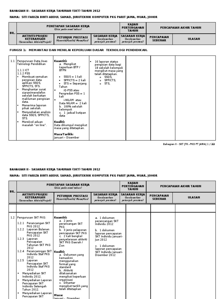 Sijil Vokasional Malaysia SVM dalam bidang berkaitan yang diiktiraf oleh Kerajaan. Contoh Sasaran Kerja Tahunan skt Gurudoc dvlrr268rvlz.